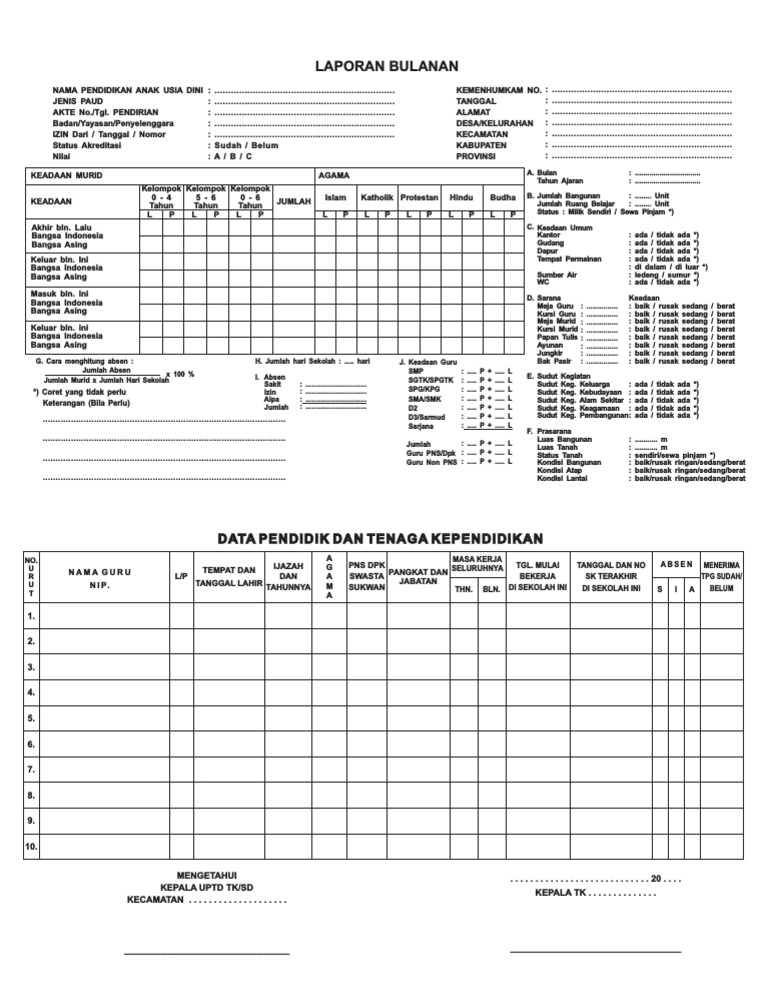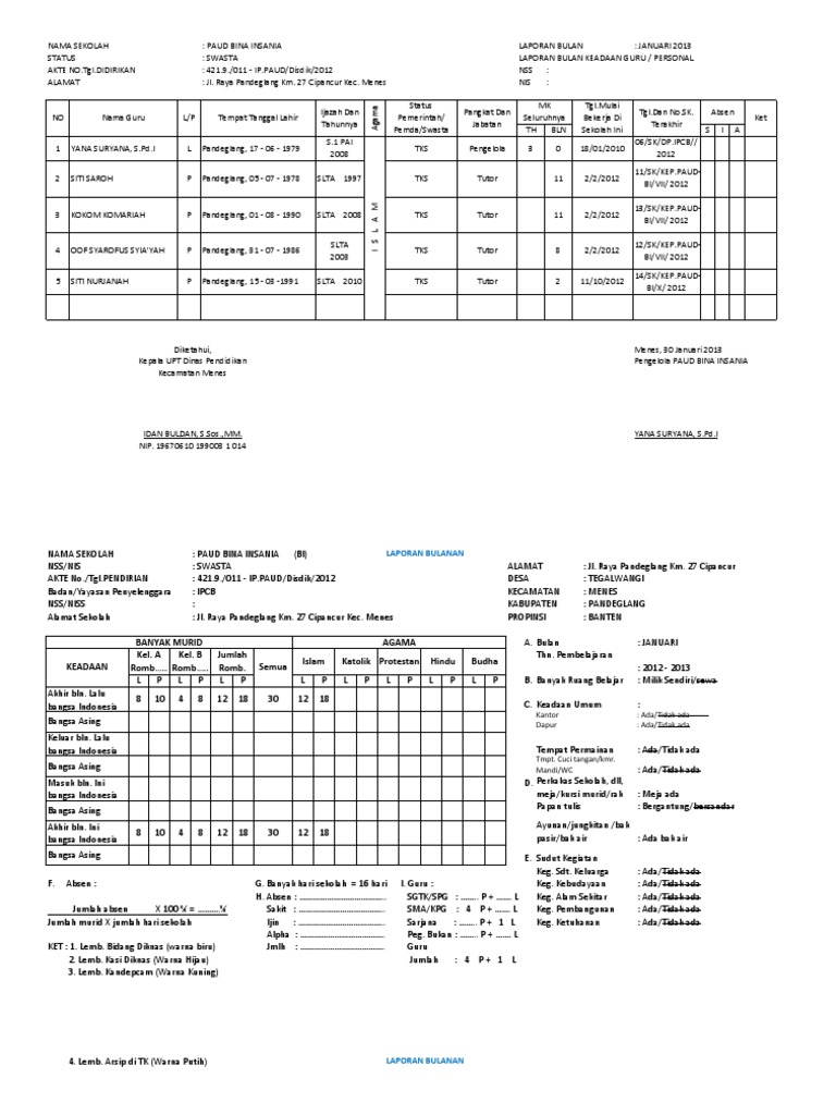 Contoh Laporan Bulanan PAUD Terbaru Arsip Guru from guru.berkasedukasi.com