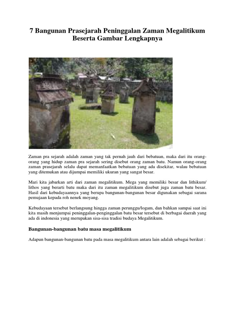 Keberadaan para penghuni pertama sulawesi tengah ini diketahui dari peninggalan sejarah berupa peralatan dari kebudayaan dongsong (perunggu) dari zaman megalitikum. Abis sous roche ini merupakan goa yang menjadi tempat tinggal atau rumah manusia pada zaman mesolitikum pada kala itu. Peninggalan budaya zaman megalitikum ini berupa bangunan. Selain itu di zaman megalitikum, sistem hukum rimba (primus interpercis) yakni memilih yang terkuat dari yang terkuat juga telah diberlakukan. 10 peninggalan zaman neolitikum beserta gambarnya dan juga penjelasannya paling lengkap, mulai dari alat berburu, kerajinan. Alat manusia purba pada zaman batu beserta gambarnya.alat alat peninggalan zaman batu beserta fungsinya bag 1 zaman prasejarah di indonesia terbagi menjadi dua yaitu zaman batu dan zaman logam. Peninggalan zaman mesolitikum beserta gambarnya. Posting pada sejarah ditag 4 kepercayaan pada masa neolitikum, alat alat obsidian zaman neolitikum, alat berburu pada zaman megalitikum, apa yang dimaksud dengan zaman logam, bagaimana karakteristik kebudayaan pada zaman neolitikum, barter diperkirakan telah dikenal pada masa, batu api pada zaman, benda peninggalan masa megalitikum, cara hidup. Pada kesempatan ini akan dibahas hasil kebudayaan zaman batu yang dilengkapi dengan gambar. Menerawangi indonesia tua di gunung padang.