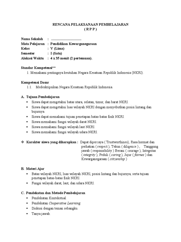 Rpp bahasa indonesia kelas xi semester 2 daring 9 februari 2022 14:23. Memahami pentingnya keutuhan negara kesatuan republik indonesia (nkri). Pembuatan rpp dilakukan pada awal semester atau awal tahun pelajaran baru. Demikianlah file rpp 1 lembar dan rpp versi banyak halaman yang bisa saya bagikan pada kesempatan kali ini, semoga file rpp kurikulum 2013 ppkn kelas x semester 1 versi terbaru yang telah saya bagikan tersebut dapat bermanfaat bagi anda, dan dapat di gunakan. Selain itu, telah diintegrasikan dengan literasi abad 21, ppk (penguatan pendidikan karakter), 4c (communication, collaboration, critical thinking and problem solving, dan creativity and innovation), dan hots (higher order thinking. Silabus pkn sd mi kelas 5 silabus rpp. Rpp pkn sd/mi kelas 5 semester 1. Download cover/sampul rpp, silabus, prota, prosem, kkm, jurnal. 1 0 23 soal semester 2. Rpp pkn kelas 1 semester 1 sabtu, 02 februari 2013.
