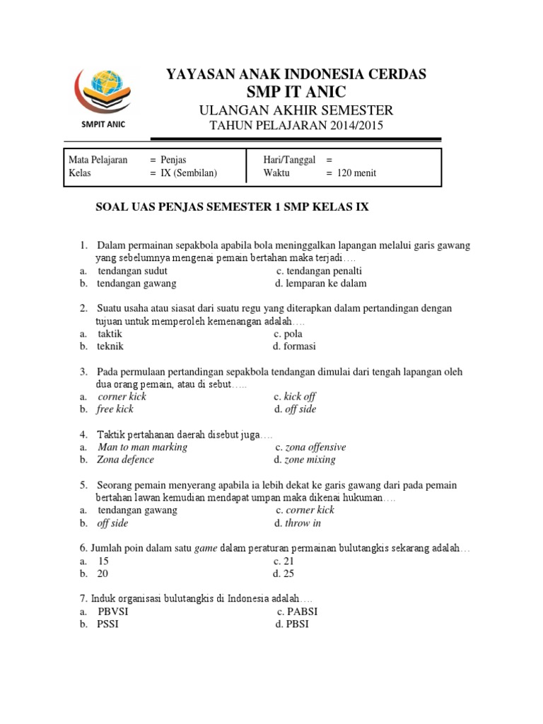Soal biologi kls 12 semester 2 soal biologi kelas 9 semester 2 soal biologi kls 1 cos soal bola voli kls 7. Kritik dan saran sangat saya harapkan demi kemajuan blog ini dimasa yang akan datang. Silakan klik link untuk membuka soal. Pada kesempatan kali ini akan kami bagikan kumpulan soal uas / ulangan akhir semester 2 (genap) kelas 9 / ix smp /. Kritik dan saran sangat saya harapkan demi kemajuan blog ini dimasa yang akan datang. Soal ini disusun berdasarkan kurikulum ktsp. Kumpulan soal bahasa inggris smp kelas 9 semester ganjil monday, november 27, 2017 soal bahasa inggris smp kelas 9 semester ganjil bagi bapak dan ibu guru smp sebentar lagi akan memasuki akhir semester ganjil atau gasal, biasanya akan disibukkan dengan membuat soal untuk ujian akhir semester (uas) atau penilaian akhir semester (pas). Untuk itu guru harus sudah mempersiapkan segala sesuatunya seperti kisi kisi uas ipa smp kelas 7, 8, 9 yang saya bagikan ini termasuk file penting lainnya seperti kartu soal, analisis soal, dan berbagai contoh soal uas ipa yang bisa. Latihan soal dan pembahasan soal uas atau pas kelas 9 semester 1 tahun 2022 tahun pelajaran 2021/2022, ulangan akhir semester (uas) adalah ulangan atau ujian yang dilakukan untuk mengukur pencapaian kompetensi peserta didik di akhir semester genap.
